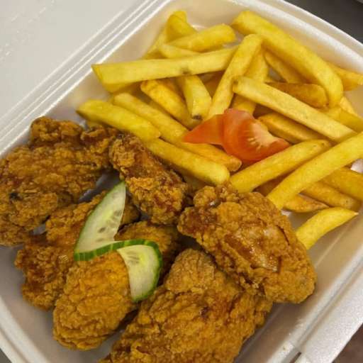 Sült burgonya (25dkg), csípős csirkeszárny (6db)