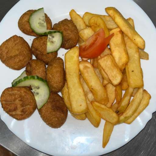 Sült burgonya (25dkg), fasírt golyó (20dkg)