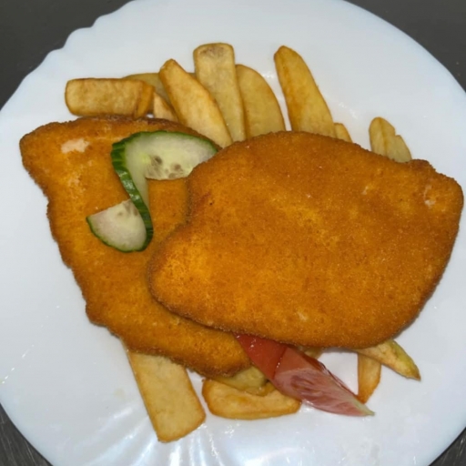 Sült burgonya (25dkg), rántott csirkemell (2db)