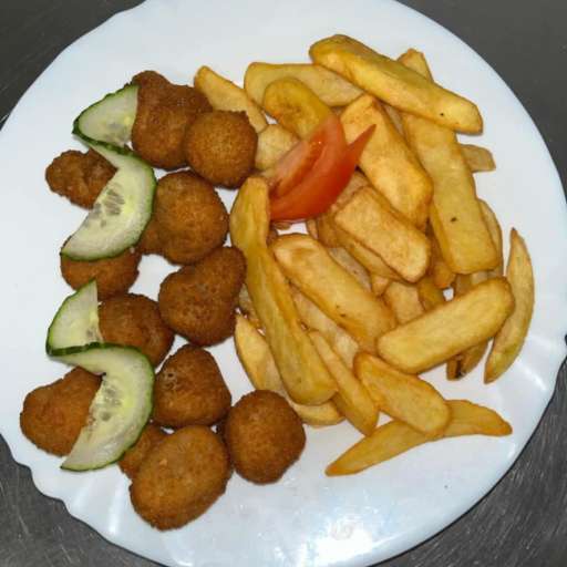 Sült burgonya (25dkg), rántott gomba (15dkg)