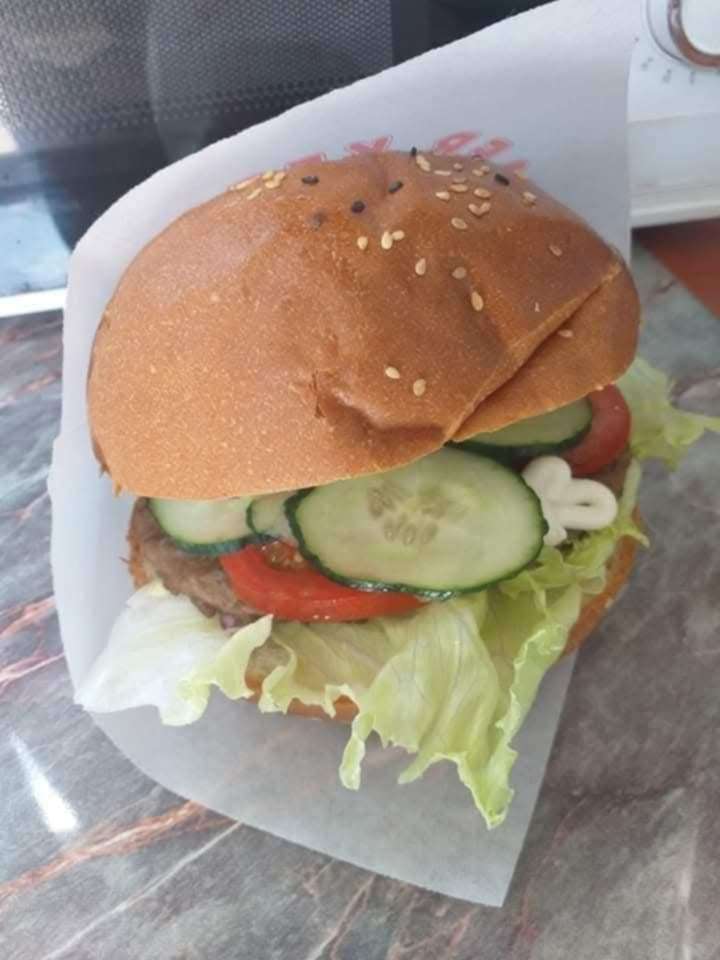 Csirke hús, ketchup, mustár, majonéz, hagyma, uborka, paradicsom, jégsaláta. Kérheted Hamburger szósszal vagy kérhetsz bele Csili szószt megjegyzésben.