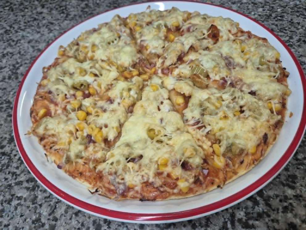 Paradicsomos alap, hagyma, gyros hús, pepperóni (sima,csípős), kukorica, trapista sajt