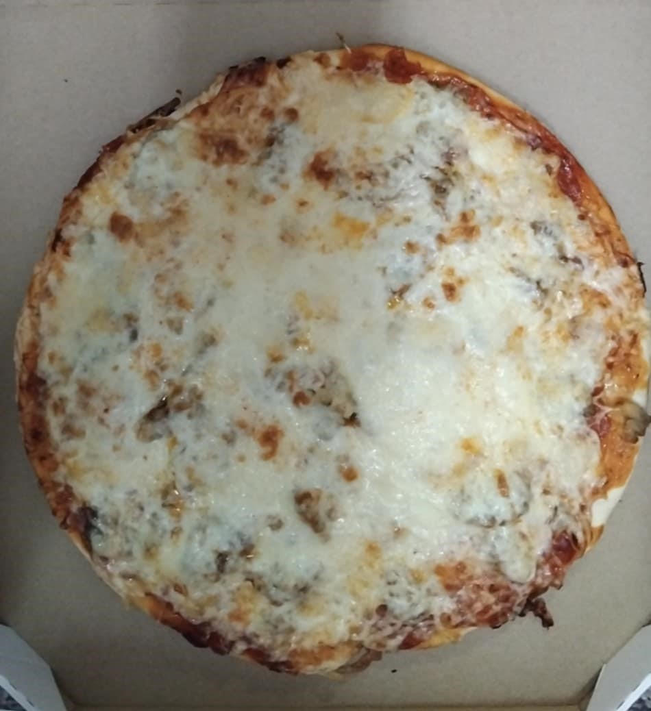 Paradicsomos alap, hagyma, szalámi (sima,csípős), gyros hús, mozzarella sajt, trapista sajt