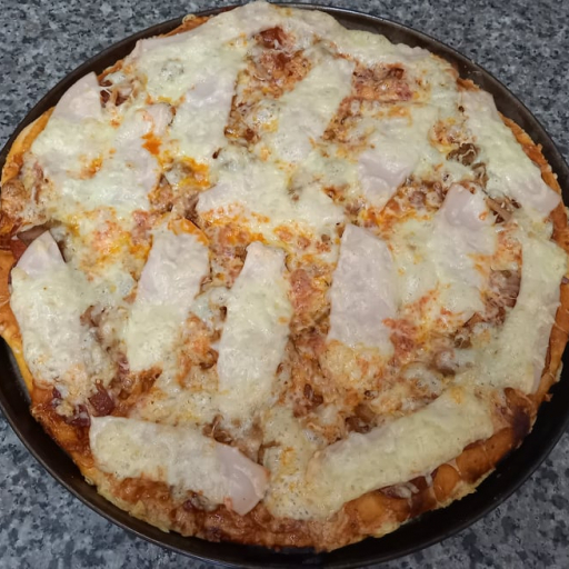 Paradicsomos alap, hagyma, szalámi (sima,csípős), kolbász (sima,csípős), gyros hús, sonka, trapista sajt
