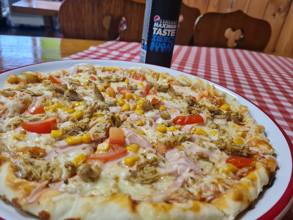 Paradicsomos alap, trapista sajt, 4 választható feltét. Választható feltétek: szalámi (sima,csípős), sonka, kolbász (sima,csípős), bacon, bab, kukorica, gomba, pepperoni (sima,csípős), sajt